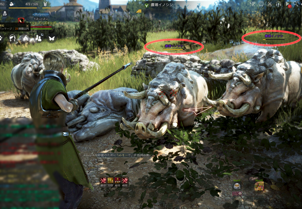 Lv.28で行く、カルフェオン地域は、紫ネーム(相手のレベルが高い場合の色)ばかり。 攻撃は少し痛いです。