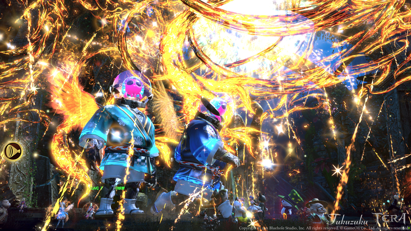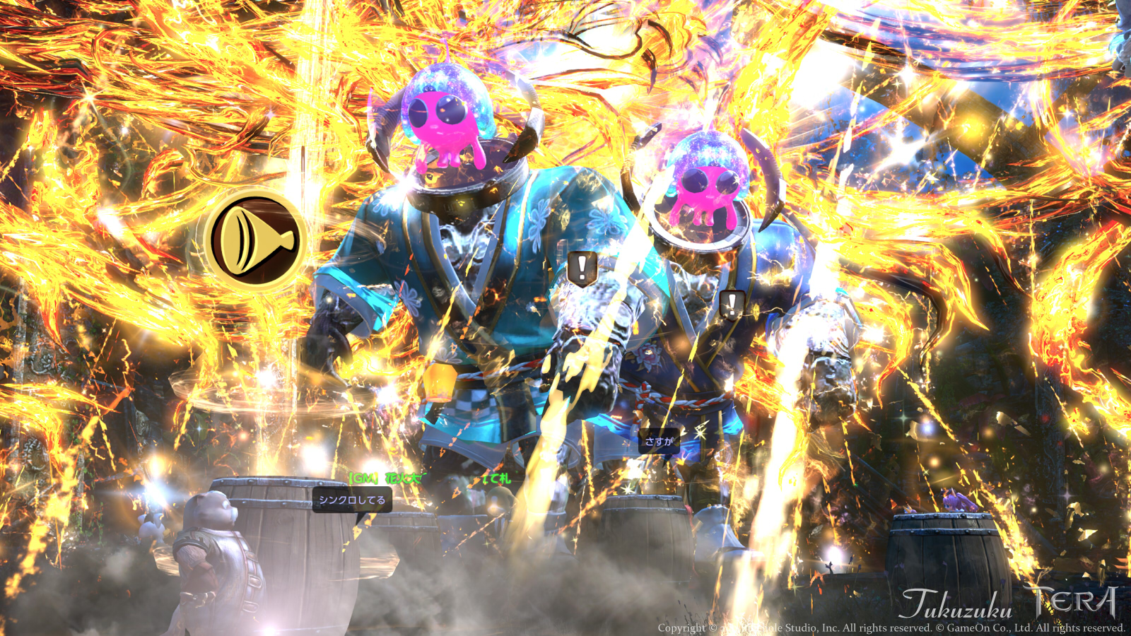 GMキャラと、そのモノマネをする方。 火炎の中、踊っていました。