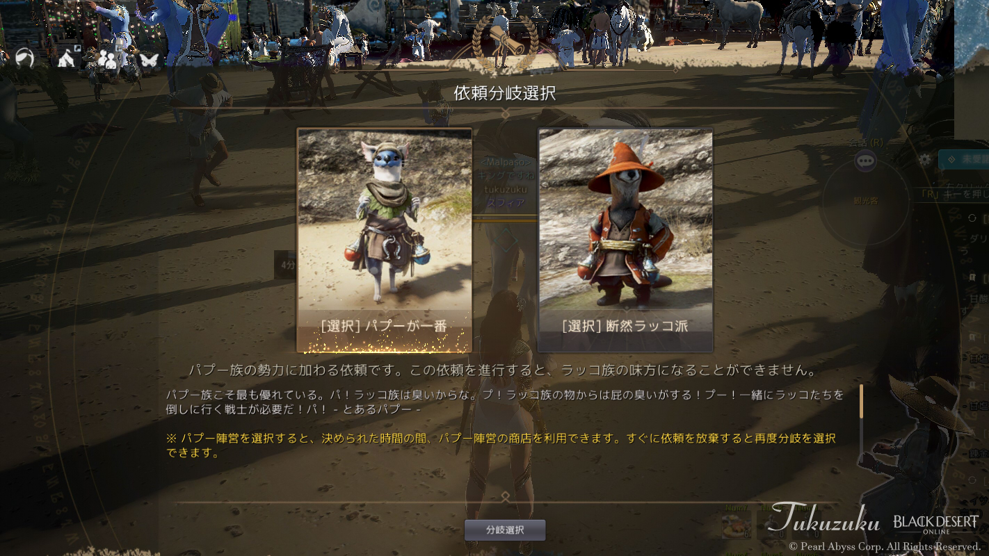 そしてイベントのパプーvsラッコ戦争。 今週はパプー側を選択。
