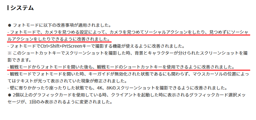 フォトモード実装の弊害で使い物にならなくなっていた「観戦モード」も使えるように戻りました。