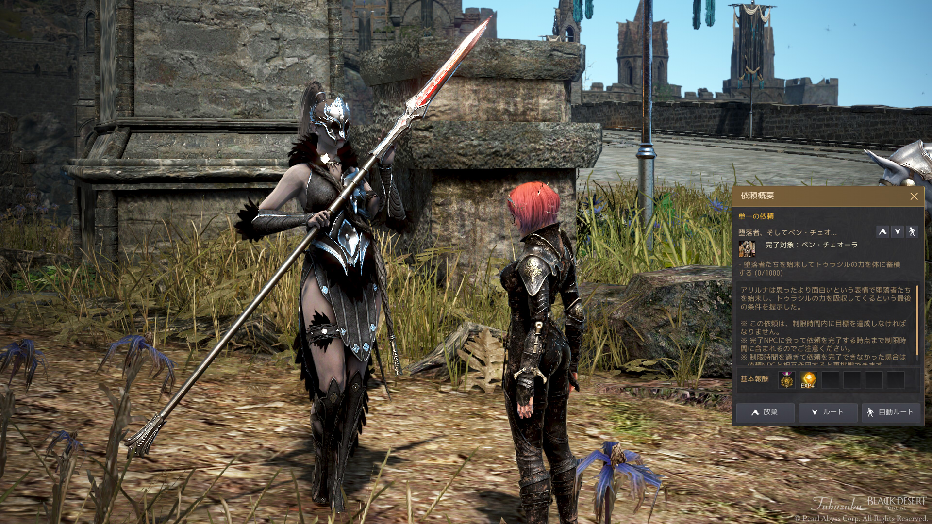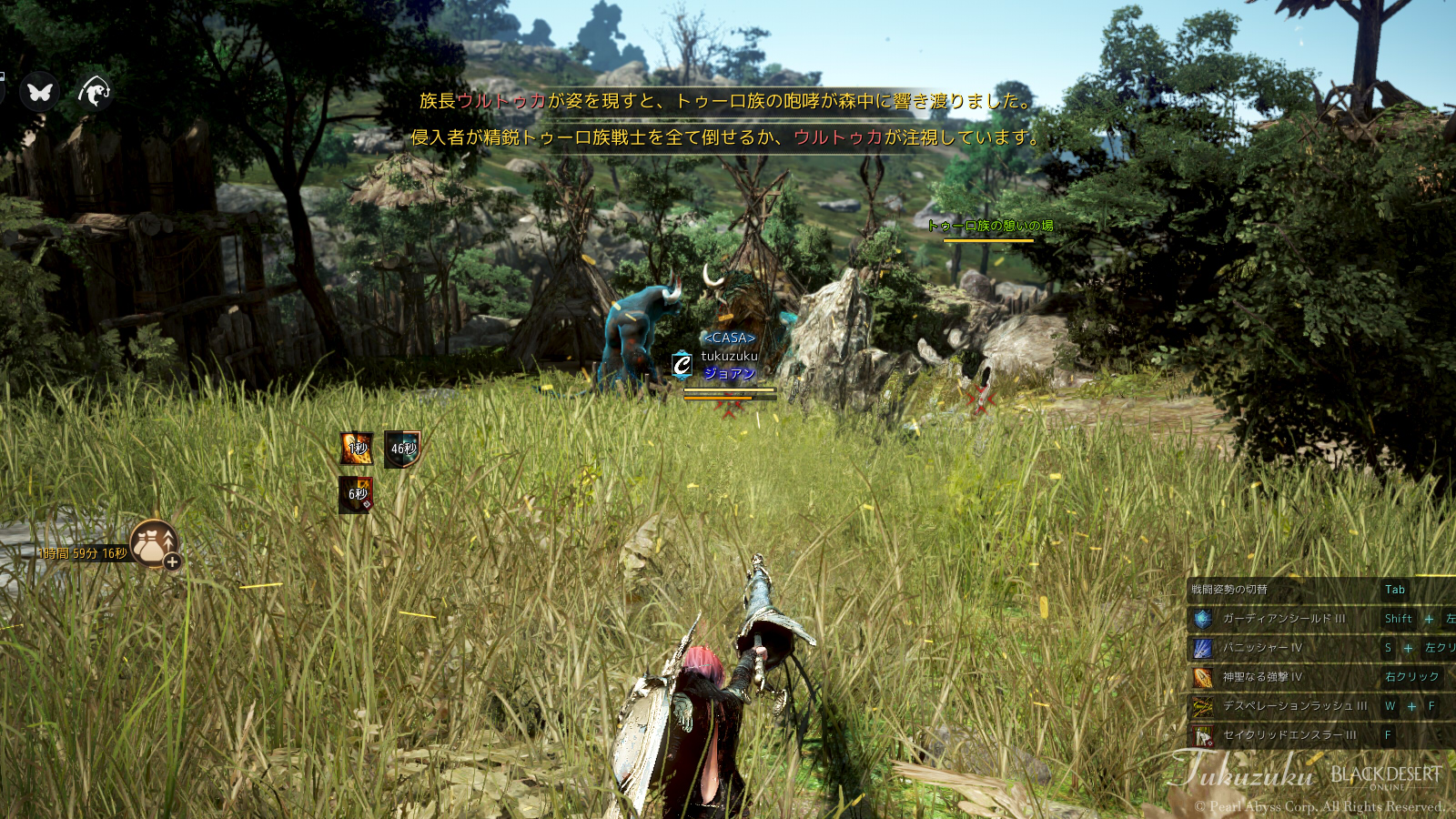 先日から、オーディリタ城入り口のNPCの依頼「ツンクタのトゥーロ族1000体討伐」というのをやっていて、その続きをしました。