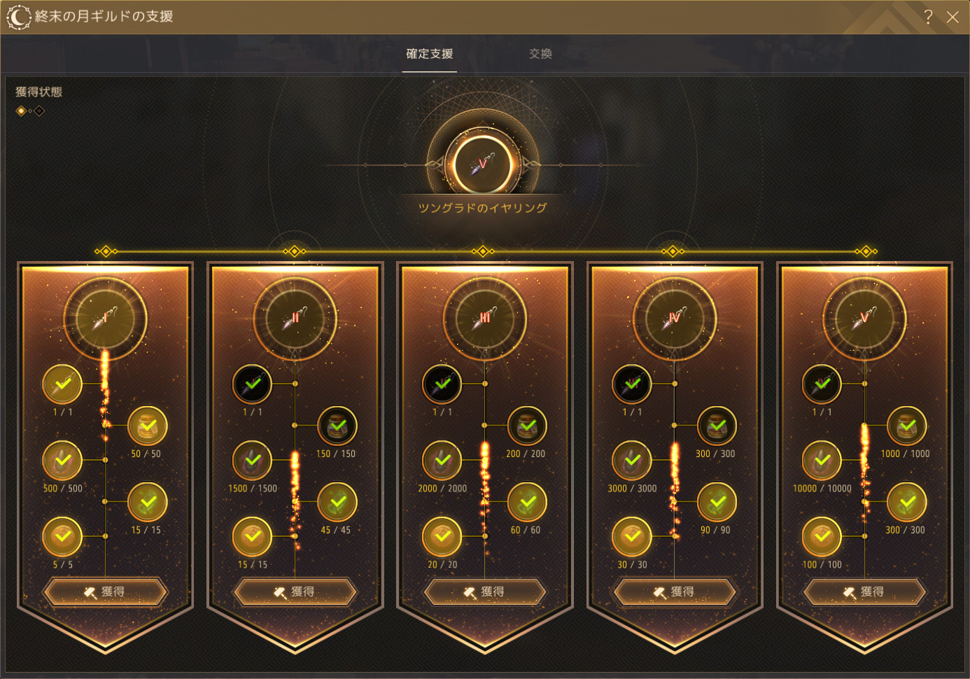 お次は「終末の月ギルドの支援」のアクセサリー強化。